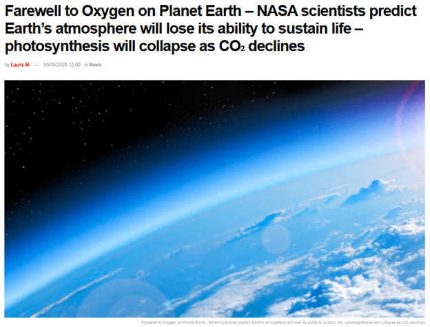 2. (2025, May 5). Farewell to Oxygen on Planet Earth – NASA scientists predict Earth’s atmosphere will lose its ability to sustain life – photosynthesis will collapse as CO₂ declines. Unionrayo.com. Retrieved May 8, 2025, from https://unionrayo.com/en/earth-oxygen-disappearance-prediction/